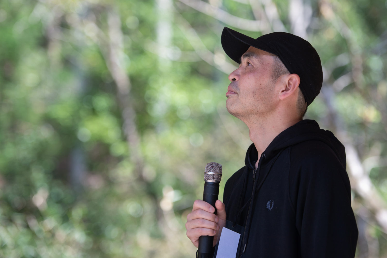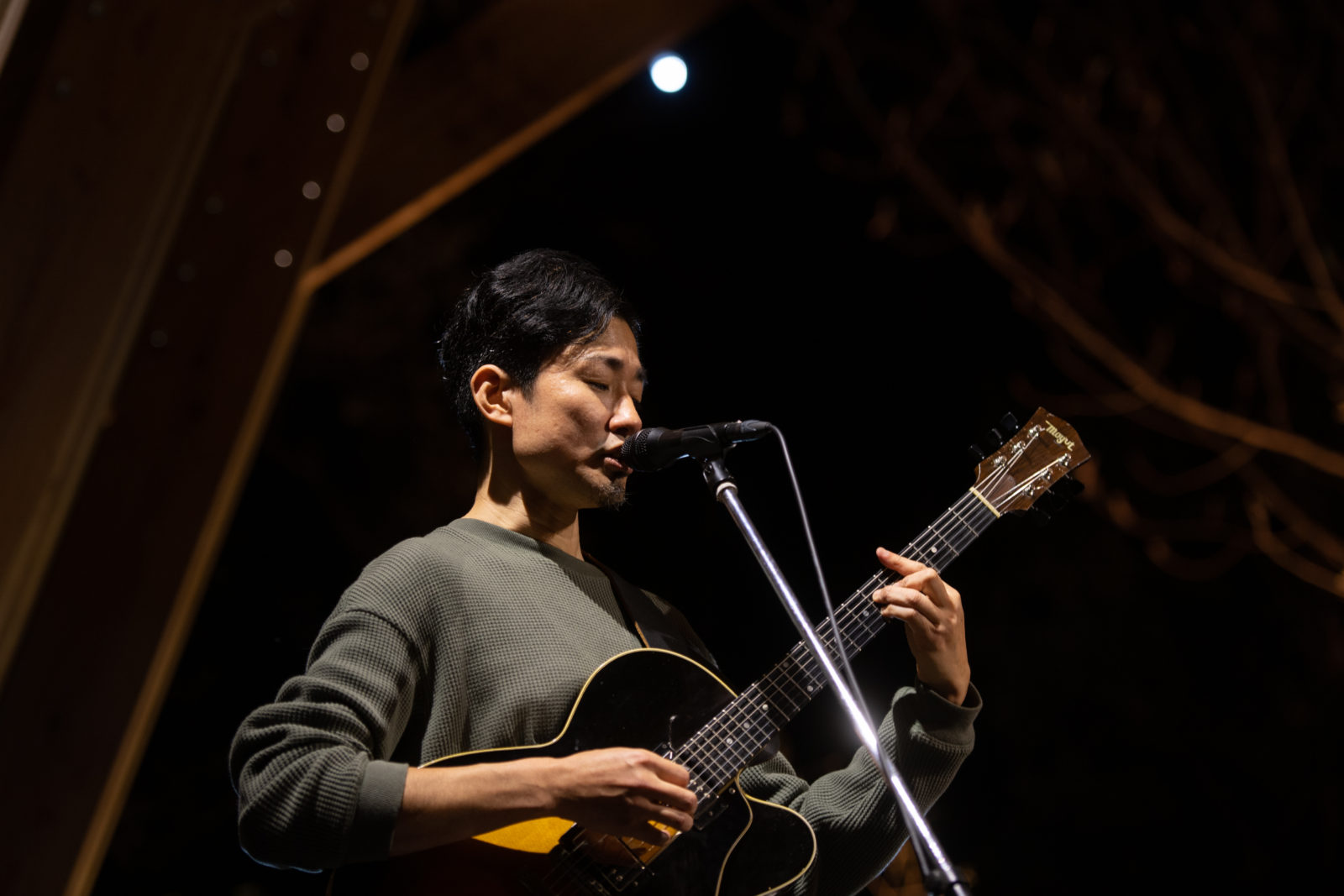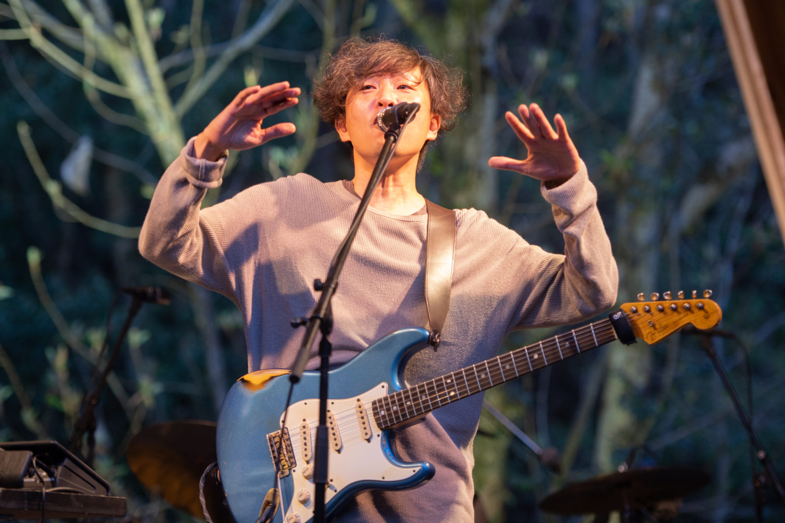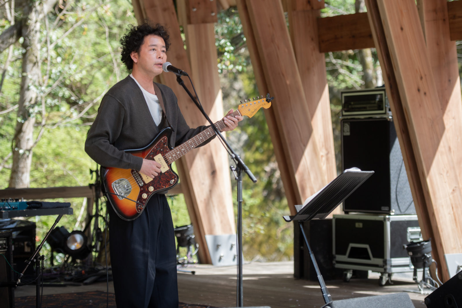 奇妙礼太郎のサウンドチェックが始まり歌声が響き始めると、ほのかに歓声が上がり始める会場内。ギターをつま弾きながら鳥が囀るような声が、オーディエンスの身体と身体の隙間をすり抜け、あきる野の自然の中へと消えていきます。