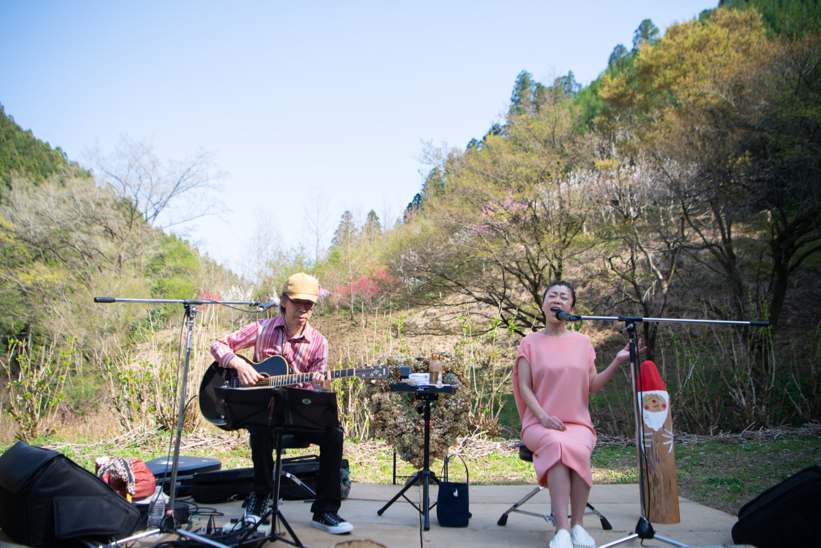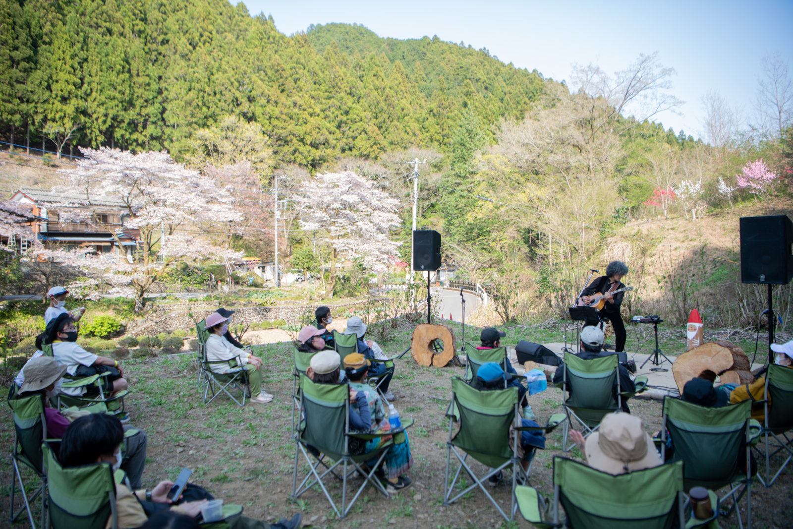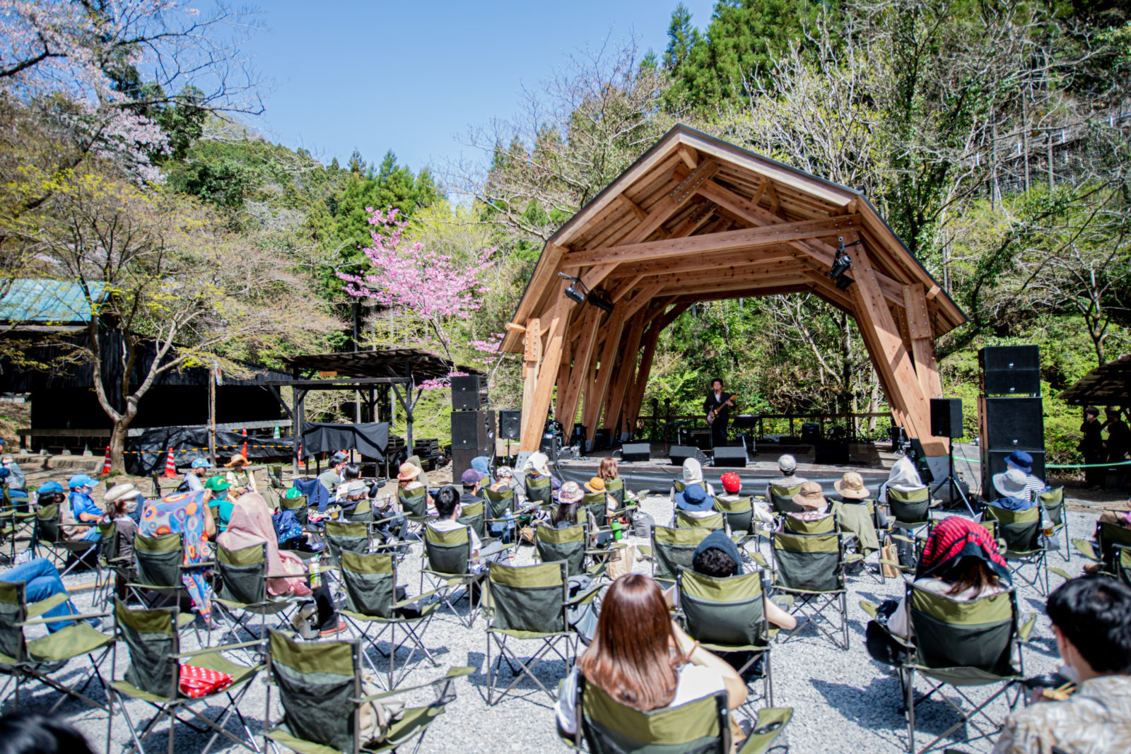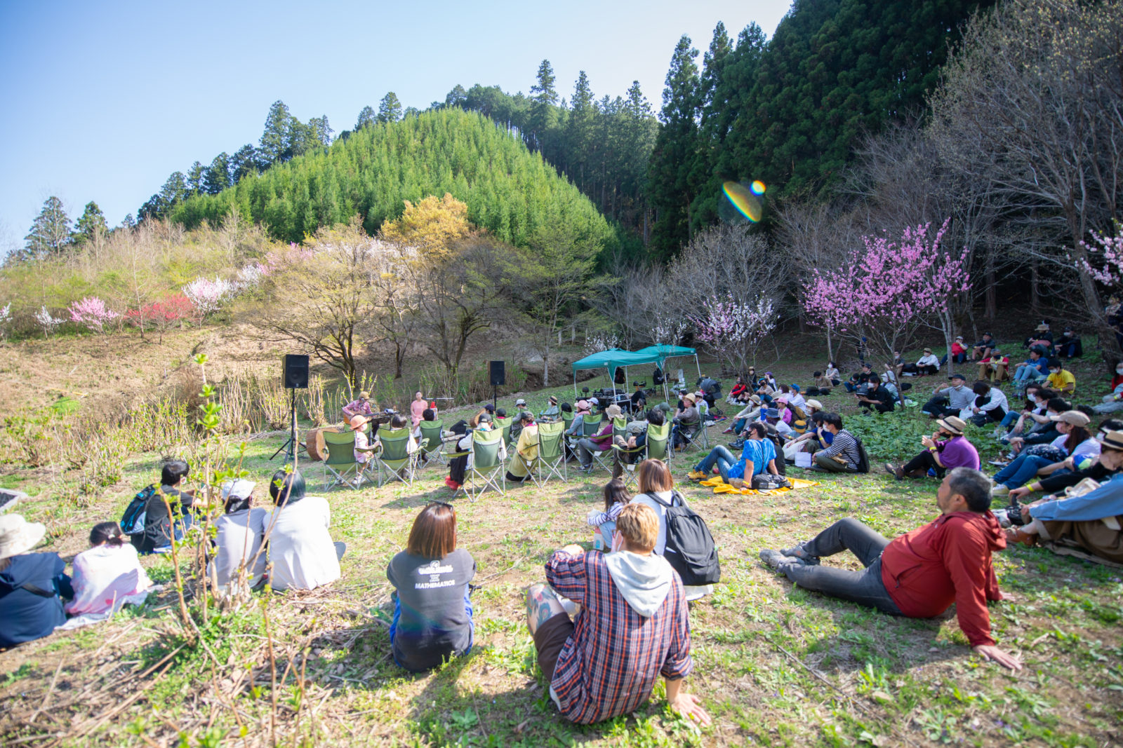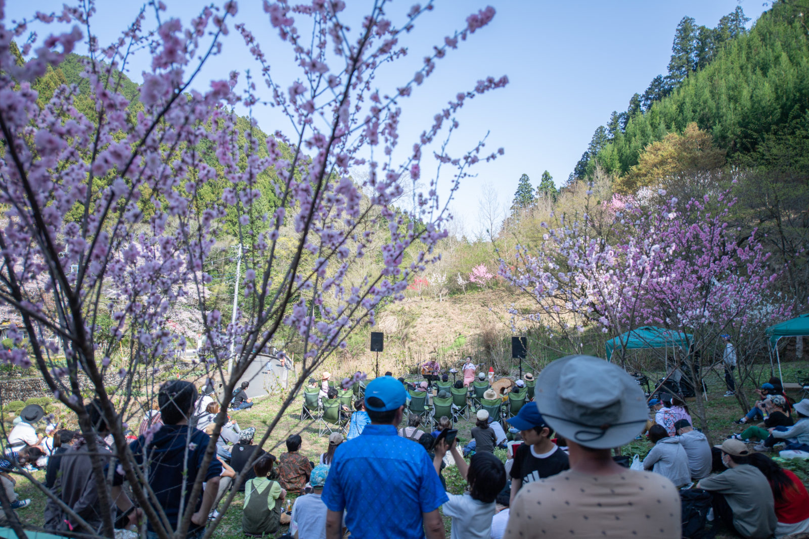 「花まつり」と銘打った本開催は、あきる野市秋川渓谷、深沢地域をはじめとした会場周辺の素晴らしい自然を満喫してもらいたいという想いで企画したソラリズムの第三弾。特設の「花まつりステージ」では満開の桃花や桜の花に囲まれた大自然の中でのステージも行われ、温かい空気に包まれる会場でみなさんと今日という日にしか味わえないひとときを過ごすことができました。