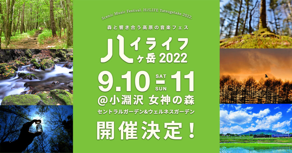 9.10(土)11(日)、北杜市小淵沢町ARSOA(アルソア)女神の森を会場に「ハイライフ八ヶ岳2022〜森と響き合う高原の音楽フェス〜」の開催が決定しました!