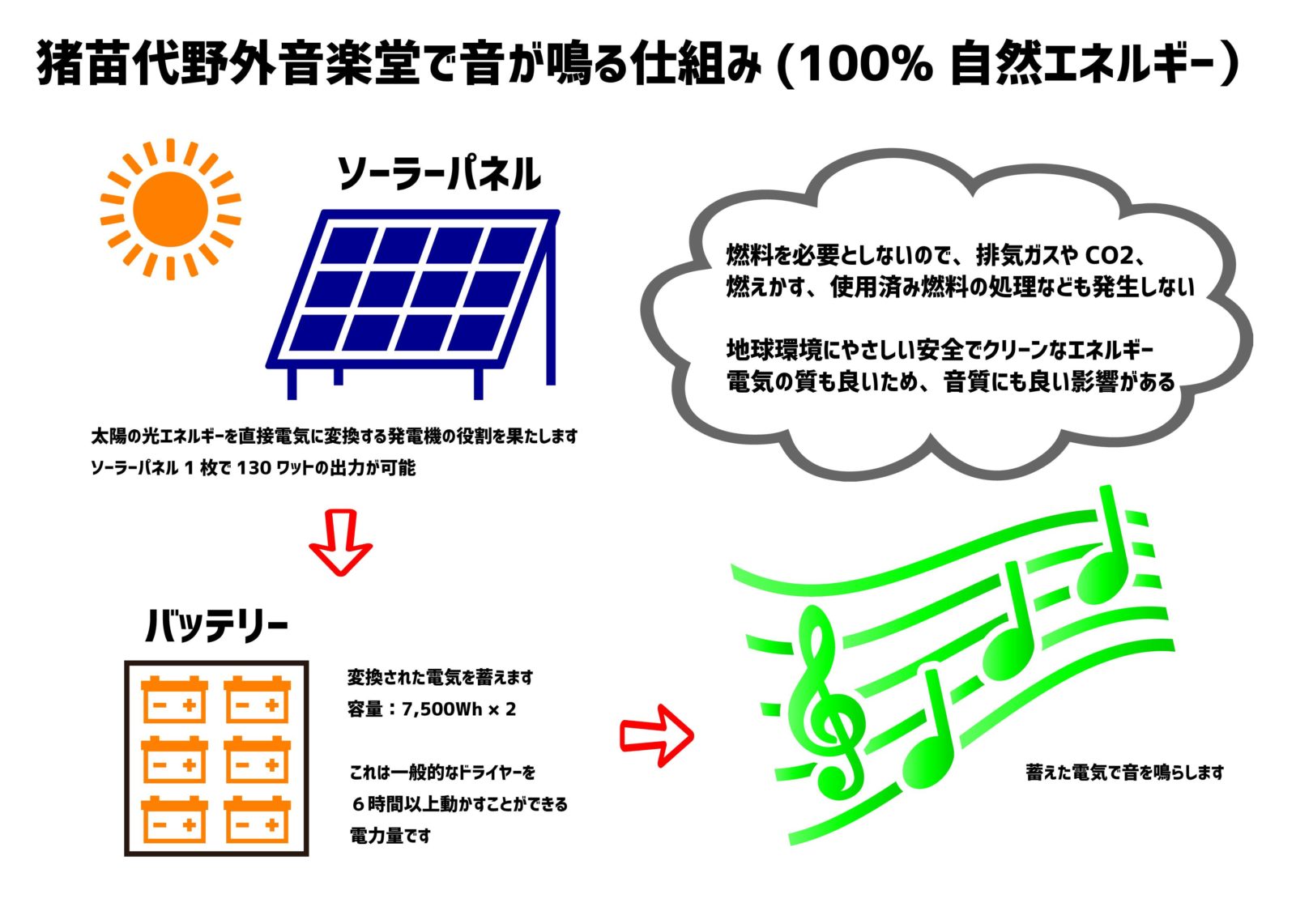 5/21(土)「野外ライブハウスLOFT#2」でご用意しているサブステージ、Bar the Loft Forest Stageは、東北ライブハウス大作戦の一環で生まれた、猪苗代音楽堂所有のソーラーパネル発電による100%自然エネルギーにてお届け致します。森と川と、太陽に囲まれた極上の空間の中で、自然エネルギーによるエコな次世代ライブステージをお楽しみください!