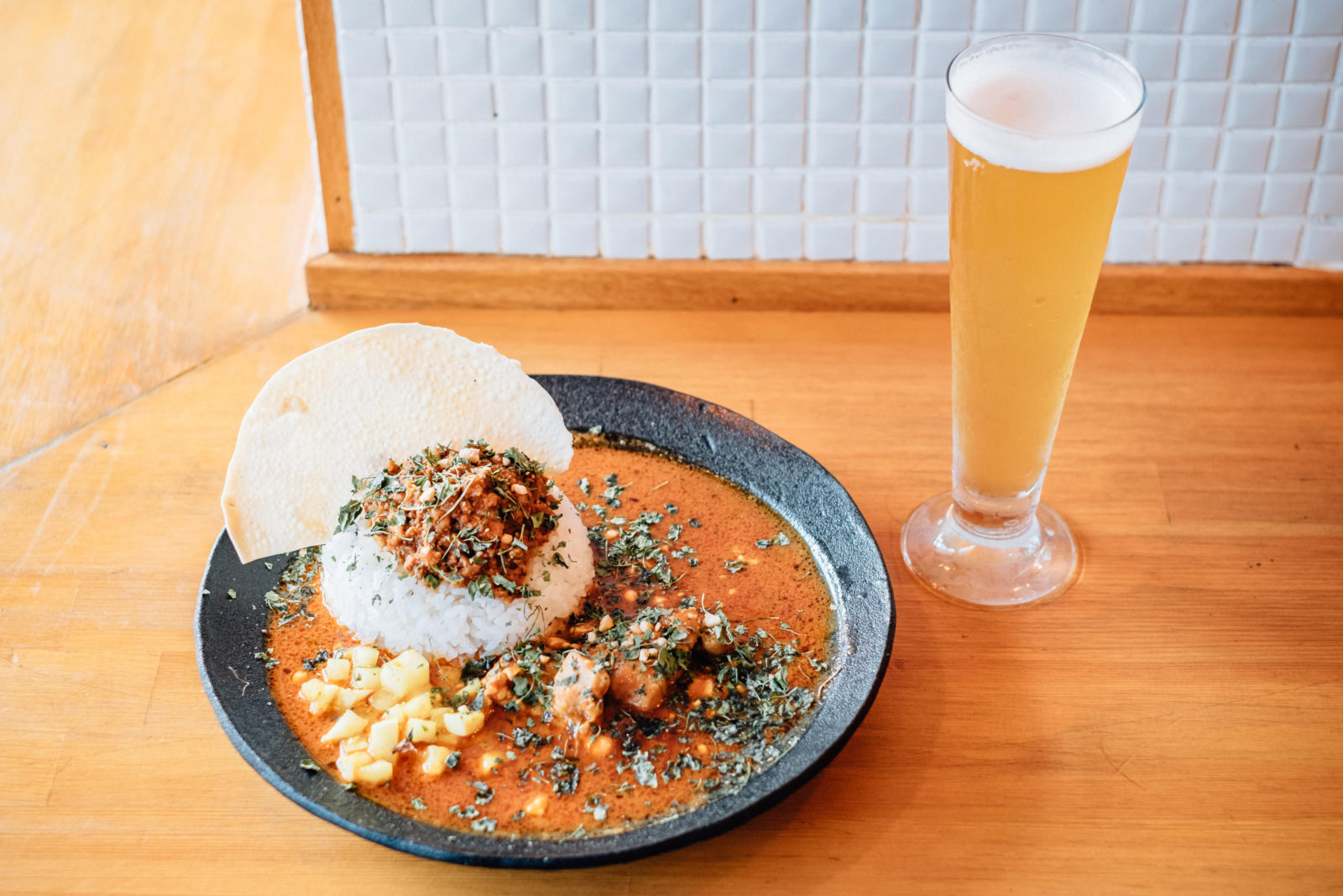 高円寺の醸造所に併設する店舗「アンドビール」では、自家醸造するビールに合わせて、スパイスカレーや創作中華料理などスパイシーな創作料理を提供しています。