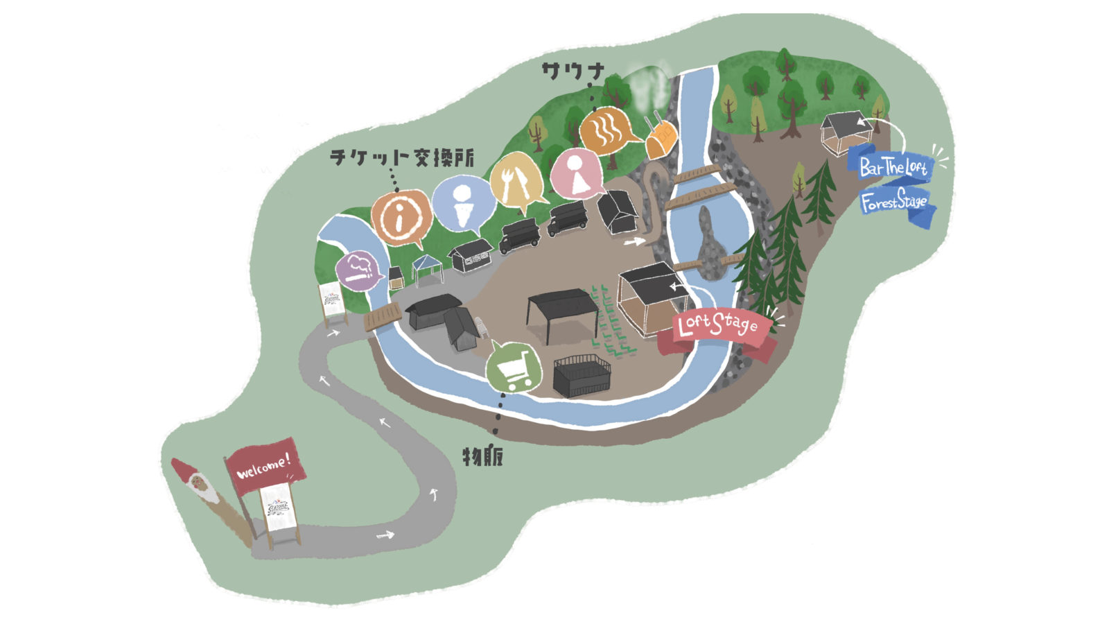会場中心部のメインステージに加え、5/21(土)「野外ライブハウスLOFT#2」では森と川に囲まれたキャンプサイト内にサブステージ「Bar the Loft Forest Stage」をご用意!