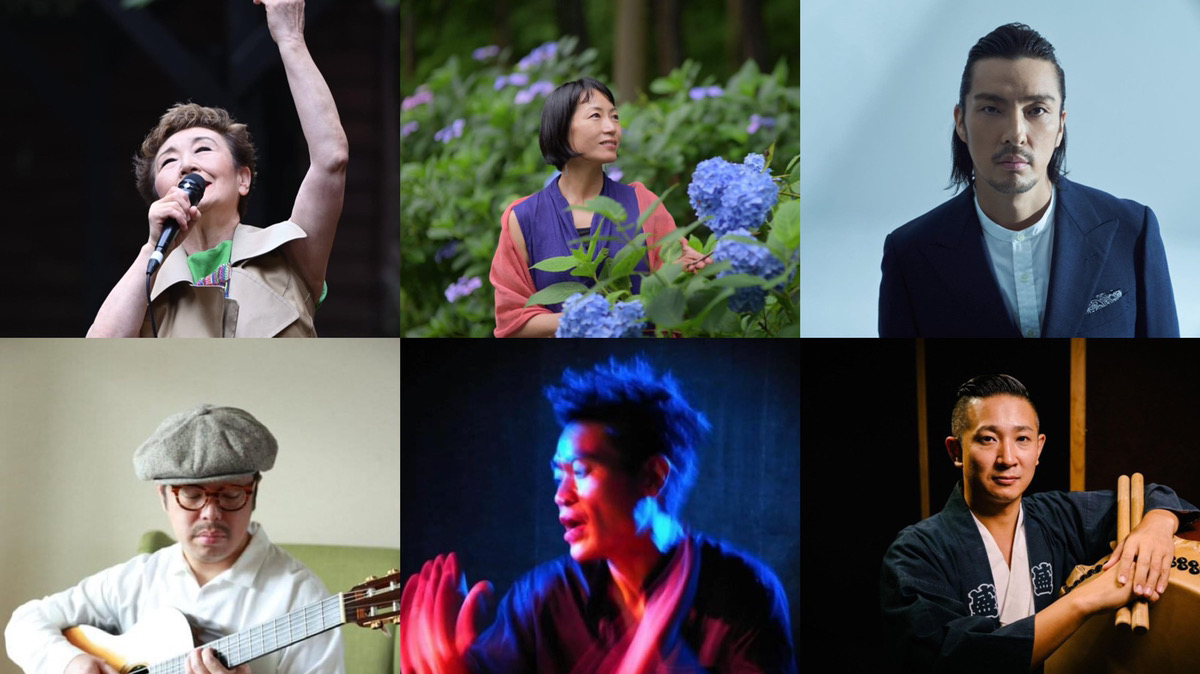 秋川渓谷あじさいアンバサダーの加藤登紀子さんを中心に、アーティストのyaeさん、新羅慎二(湘南乃風/若旦那)さん、青柳拓次さん、辻コースケさん、吉井盛悟さん(和太鼓)、お囃子(はやし)グループ(五日市社中・五日市中学校)が出演。