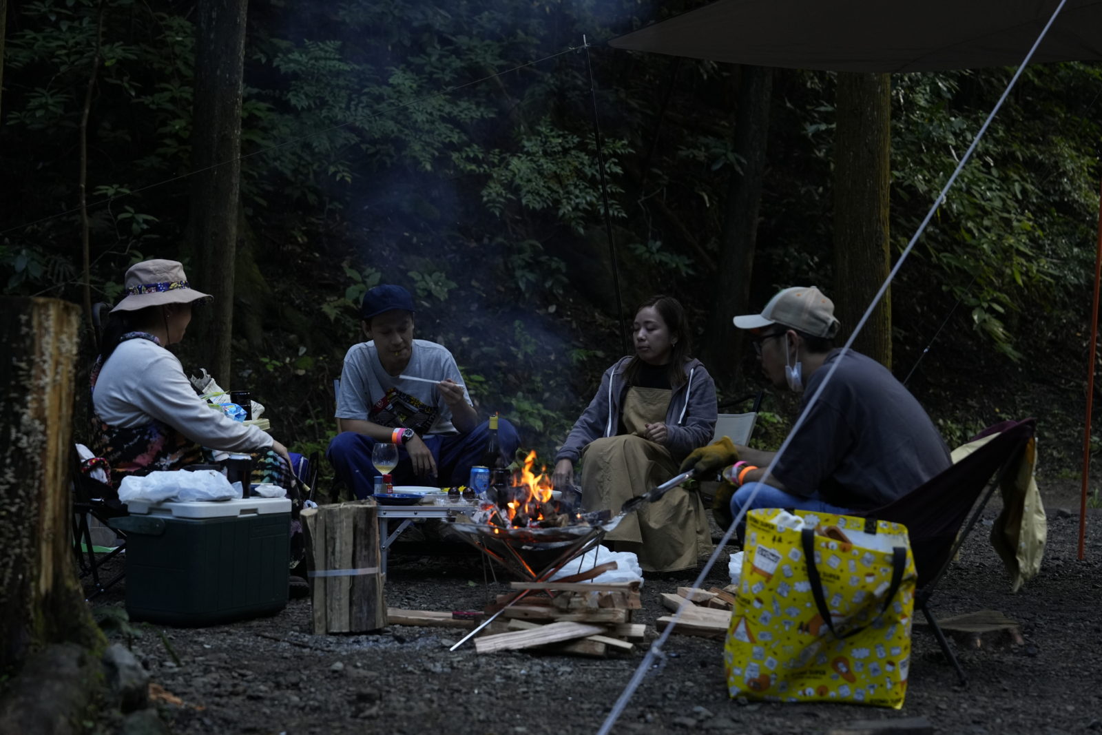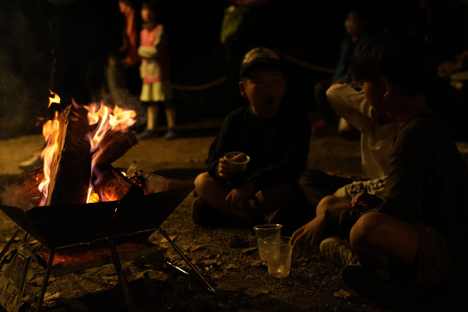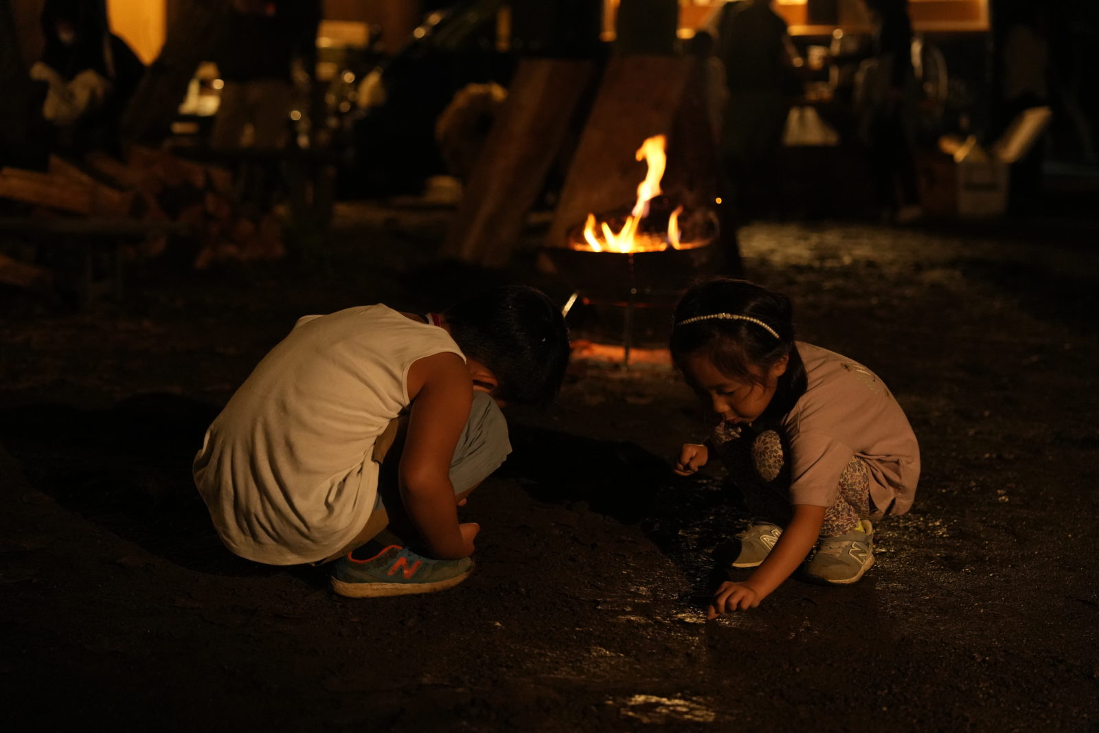 今日1日をめいいっぱい遊び尽くした皆さん。大人も子ども皆焚き火を眺めながら、ステージを見つめながら、和やかに会話をしながら二人の演奏を噛み締めているのが印象的でした。ワークショップもいよいよ終盤、「うさぎ追しかの山」そんなYaeの歌声が秋川のふるさとにのエンディングを知らせます。