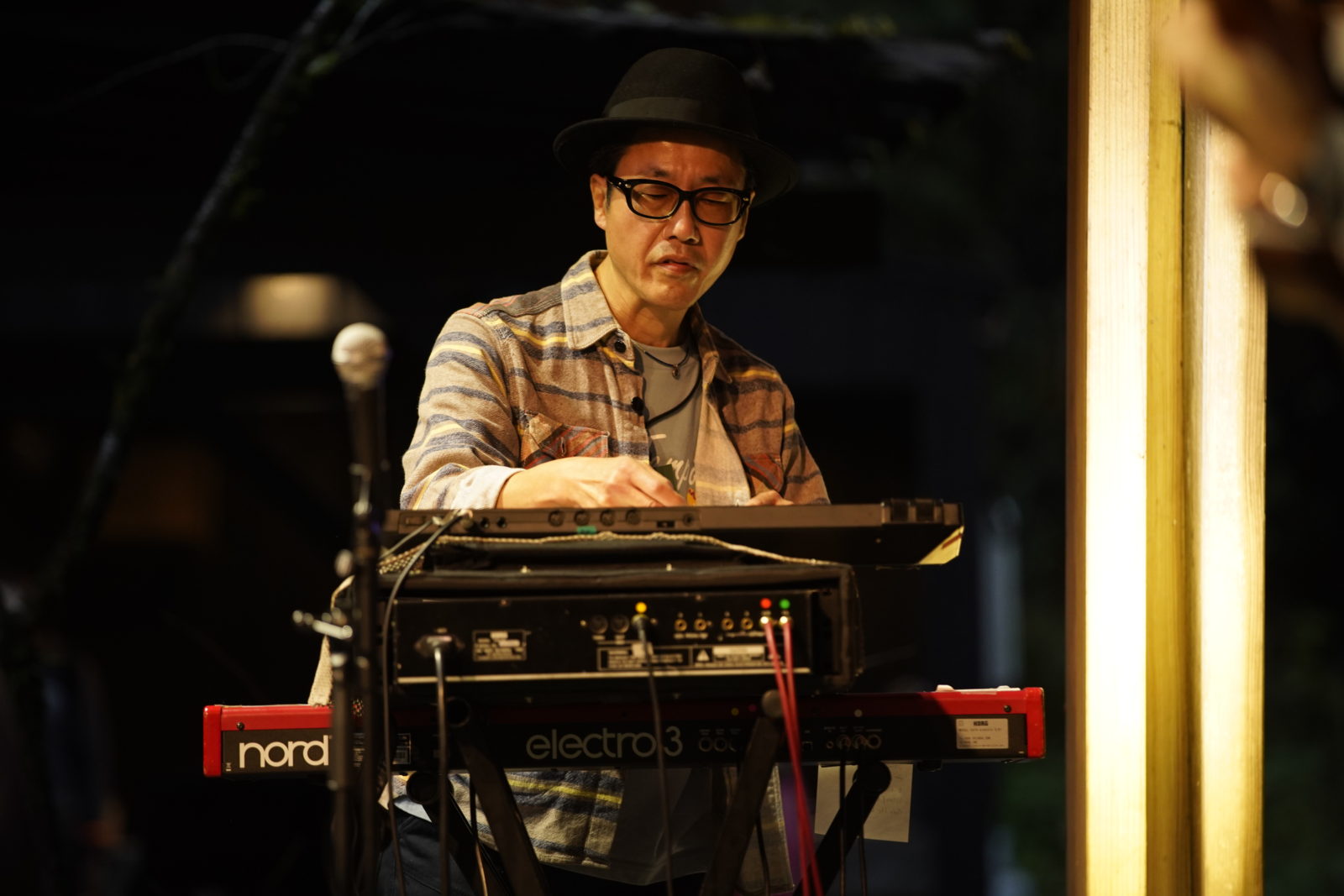ソロパートが順に回るごとに客席は拍手と和やかな歓声に包まれ、お酒片手にゆらめくオーディエンスの波に乗せられるように演奏の熱量も増幅。焚き火の炎も色を濃くしていくブルーモーメントの中、11年ぶりのアルバムをリリースした彼らのグルーヴィーなステージに魅了される会場は、徐々にエモーショナルな祭りの夜へと表情を変えていきます。