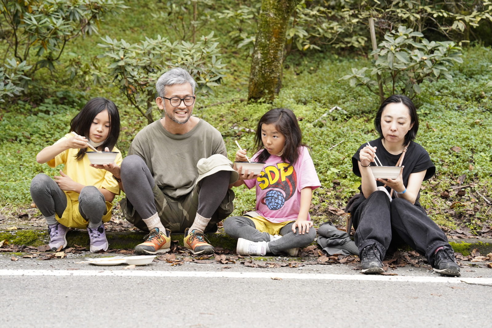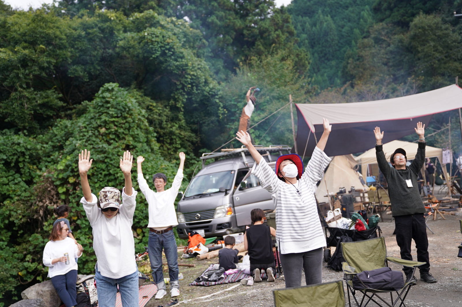 この日に合わせたくさんの新曲を用意してくれたさとうこむぎの演奏が終わり、続いてヨガのワークショップが始まります。秋川渓谷の澄んだ空気と川のせせらぎを深く吸い込みながら大きく手を広げる皆さん。トーキョーマウンテンにふさわしい和やかなひと時が広がりました。
