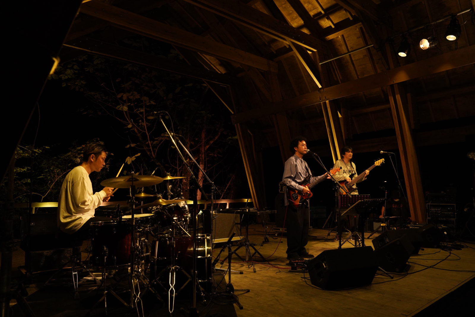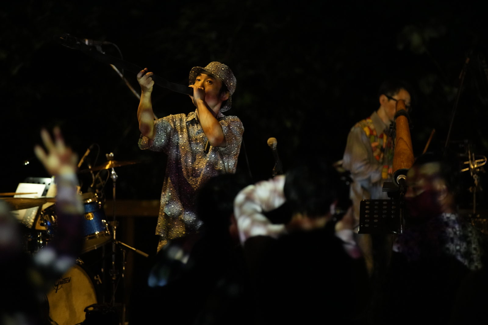 「最後に今の季節にぴったりな曲を」そんな言葉で始まったのはフィッシュマンズの名曲「SEASON」のカバー。季節の変わる秋川渓谷に、涼やかなギターの音色とドクドクと静かに脈打つようなキックが鼓動し、会場は緩やかな一体感に包まれていきました。
