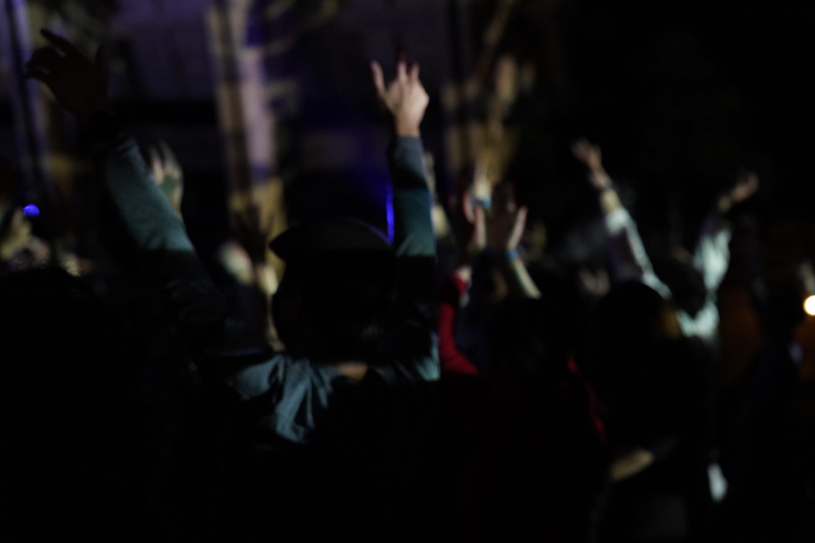 2日間のトーキョーマウンテンサブステージの大トリをつとめるのは、話題の打楽器集団ラセーニャス。様々な楽器を手にステージをいっぱいに埋め尽くすメンバーたちの姿はまさに圧巻!中央指揮者の大きな腕の一振りで轟音の演奏が地鳴りを上げ始め、緩急をつけながら身体全体で音を叩き出していく彼らの熱気に会場は圧倒されていきます。どんどんとハイになっていくステージに合わせてオーディエンスも大きく身体を揺らしていました。