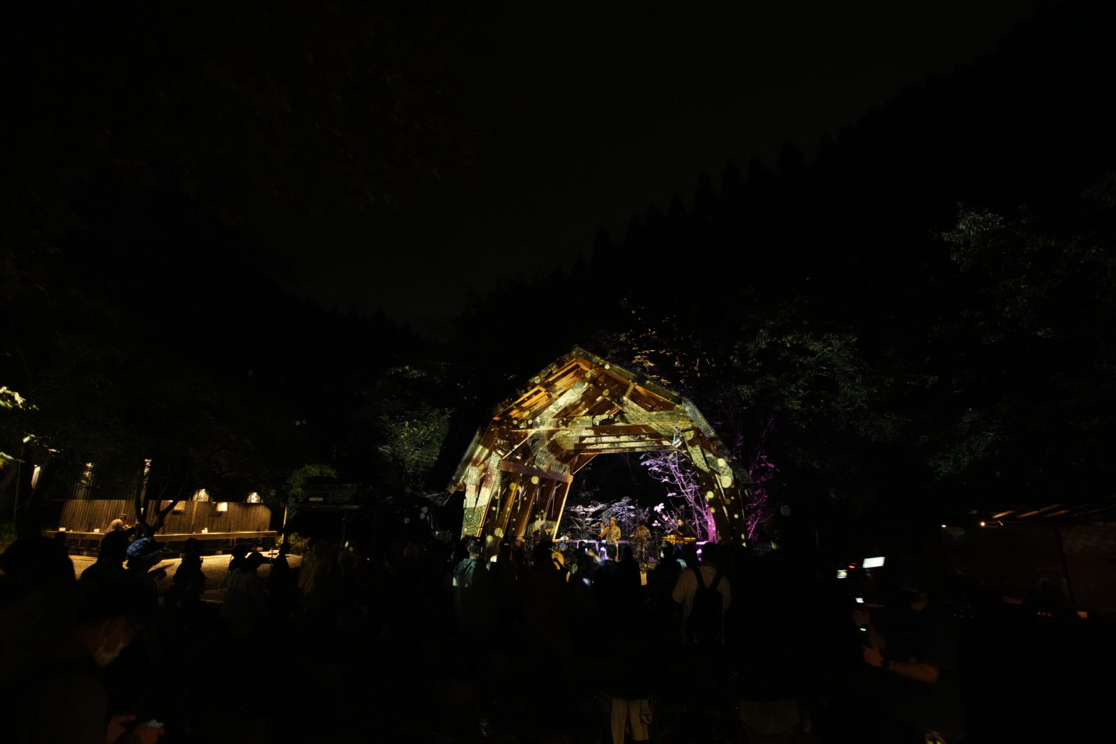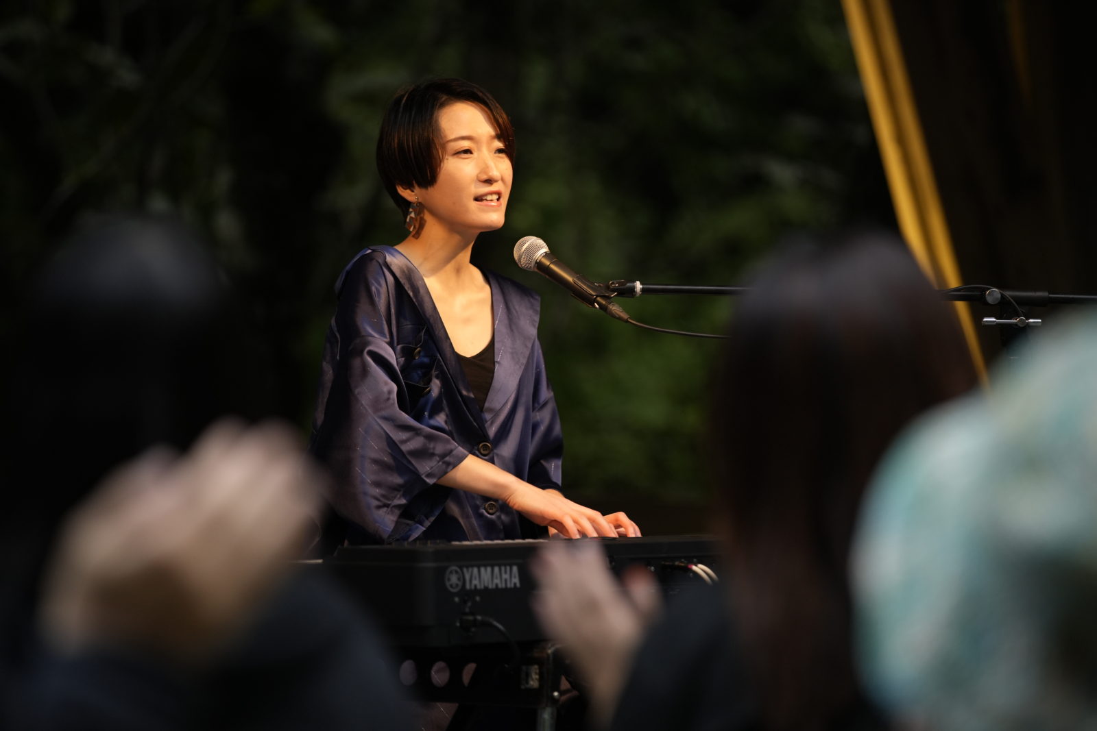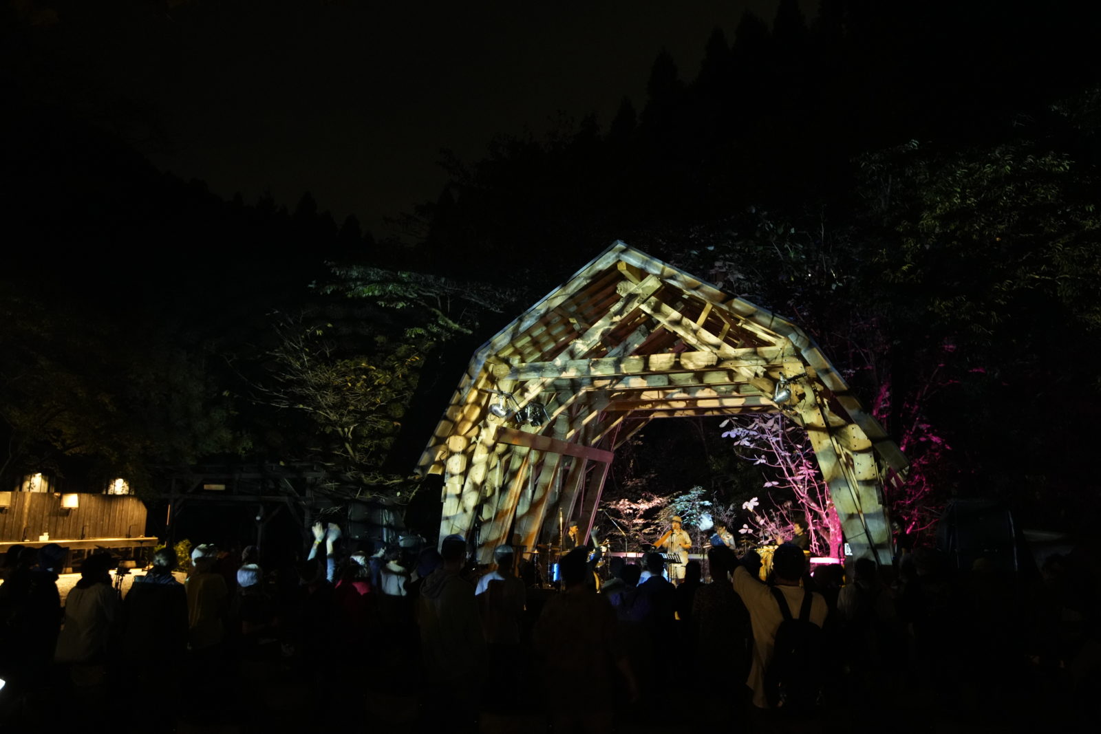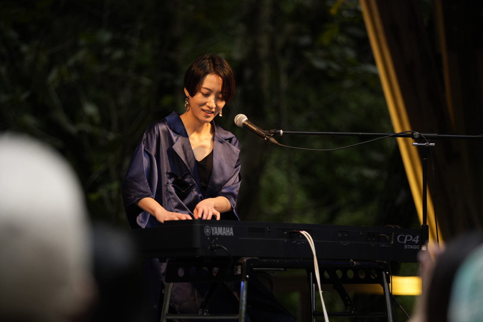 「今日はぜひ第6感まで使ってめいいっぱい楽しんでいってください」そんな彼女のMC。夕暮れの山はまた日中と表情を変え、私たちの感受性に優しく憩うようでした。「皆さんを夜へと送り出したいと思います」、夜のお祭りに向けてその情緒を増していく彼女の歌声に会場は歓声に包まれました。