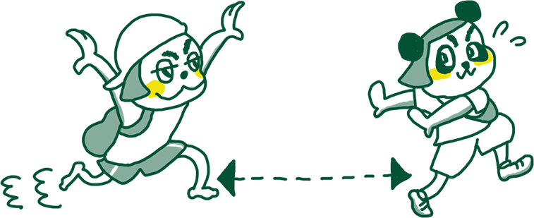 入場混雑時や飲食店等での列に並ぶ際には、1mを目安に間隔を空けてお並びください。混雑状況によっては、入場を規制いたします。