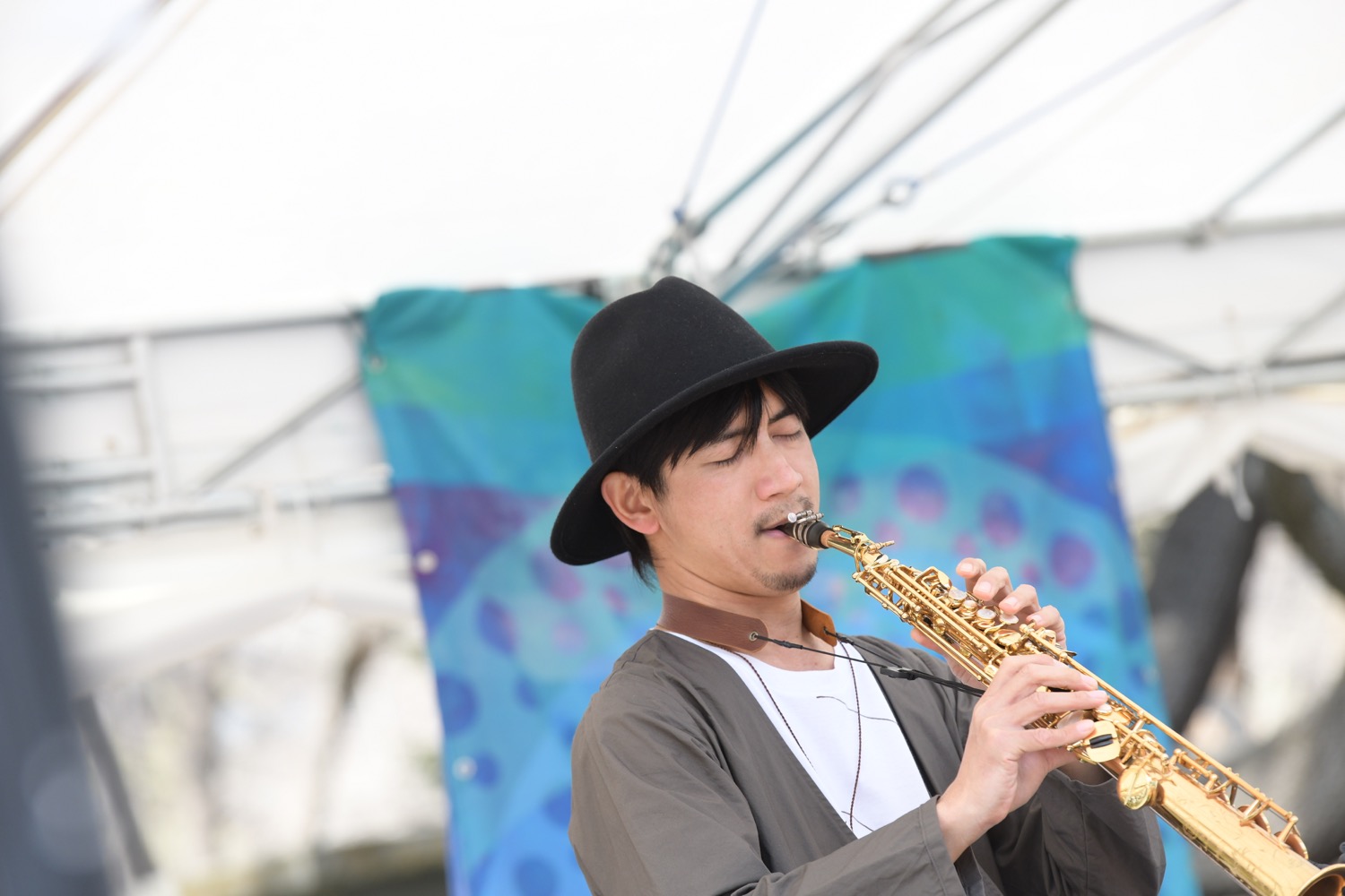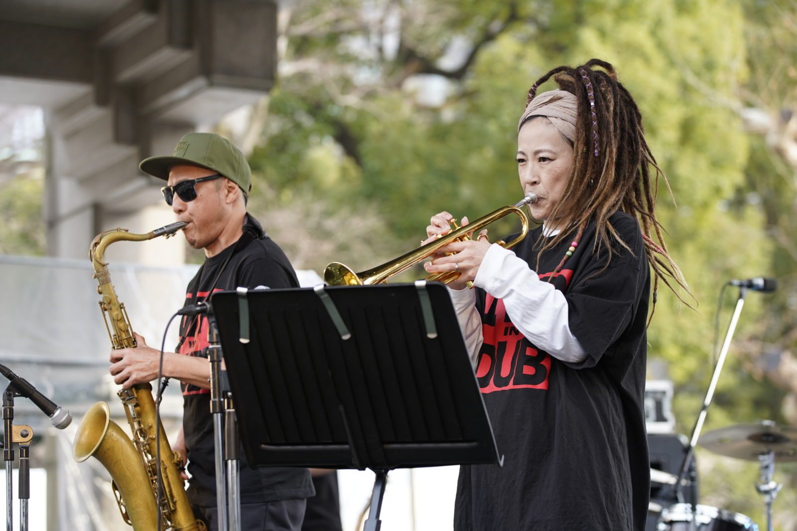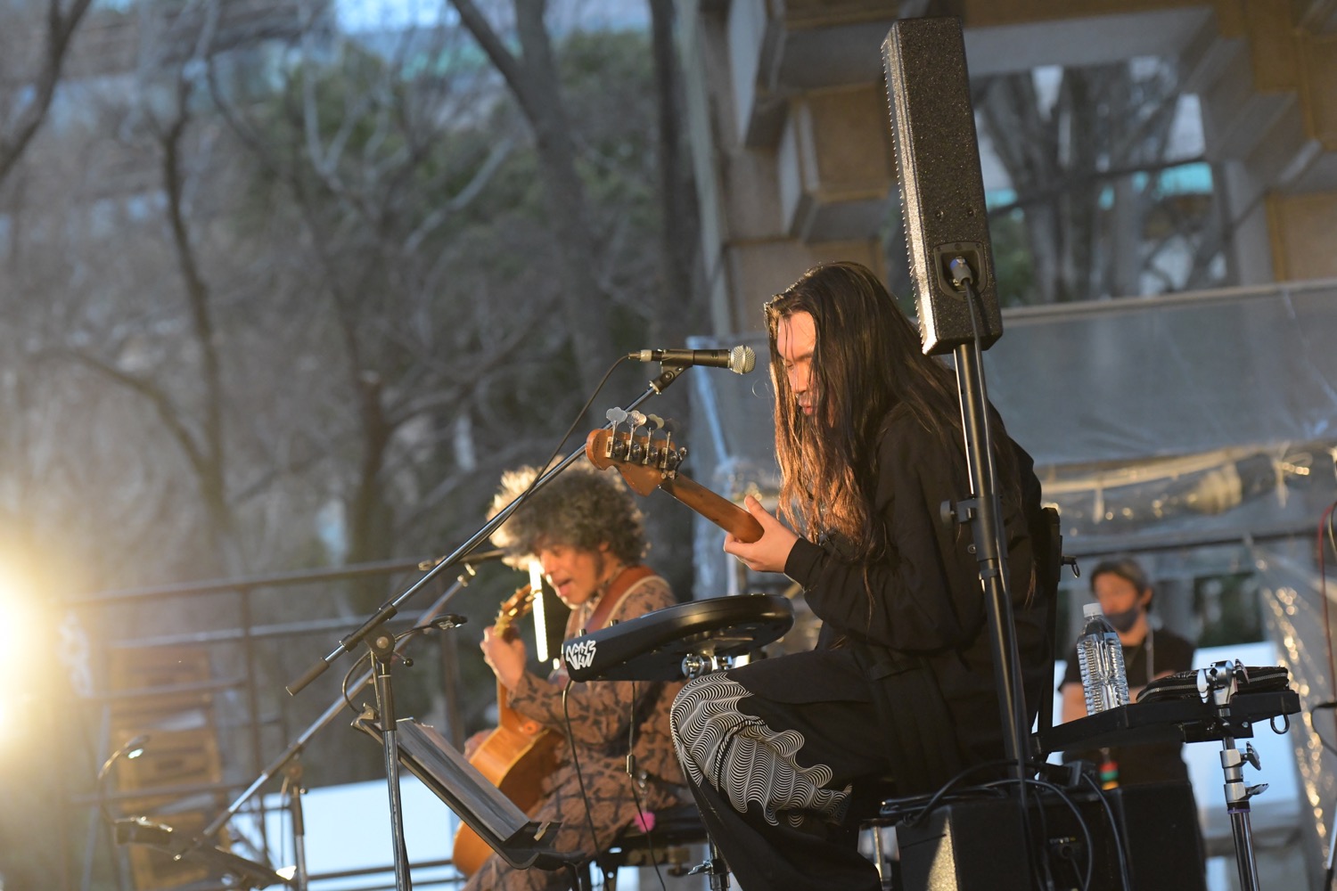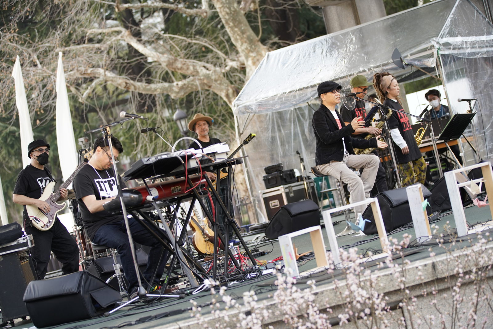 日曜日お昼の日比谷公園をまったりと楽しむ人々で賑わう中、管楽器と鍵盤の音が噴水広場に響きます。この時間、この場所で聴く庸蔵 × 木村イオリの演奏はまさにベストアクト!ゆったりと身体を揺らしながら彼らの軽快な音に会場は笑顔に満ちていきます。