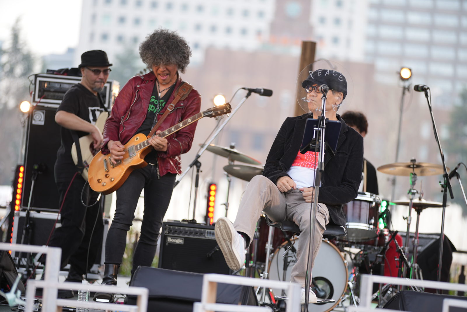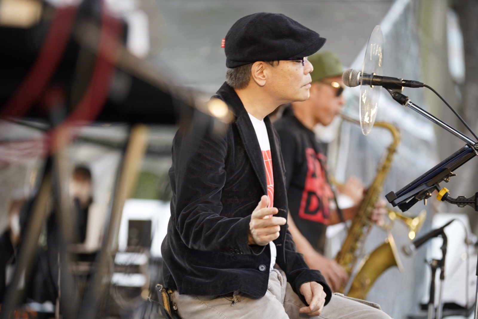 管楽器を含む6人のバンドセット中央の椅子に腰かけるいとうせいこう。レゲエのビートに合わせて紡がれる彼のポエトリーがわたしたちに少しの哲学を授けます。ディレイがかかった繰り返されるメッセージとビートを咀嚼しながら体を揺らすオーディエンス。徐々に生まれるグルーヴは、最後の曲にゲストでステージに上がった佐藤タイジのギタープレイを皮切りにエクスタシーへと昇っていきました!