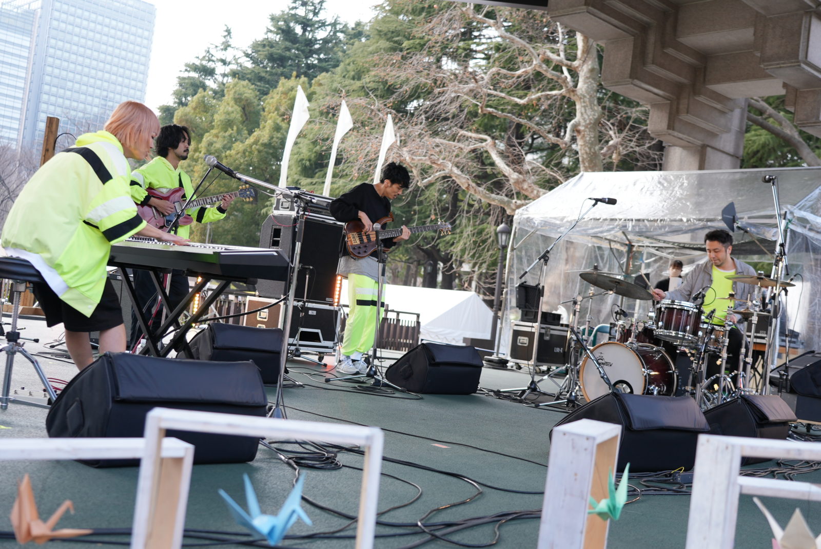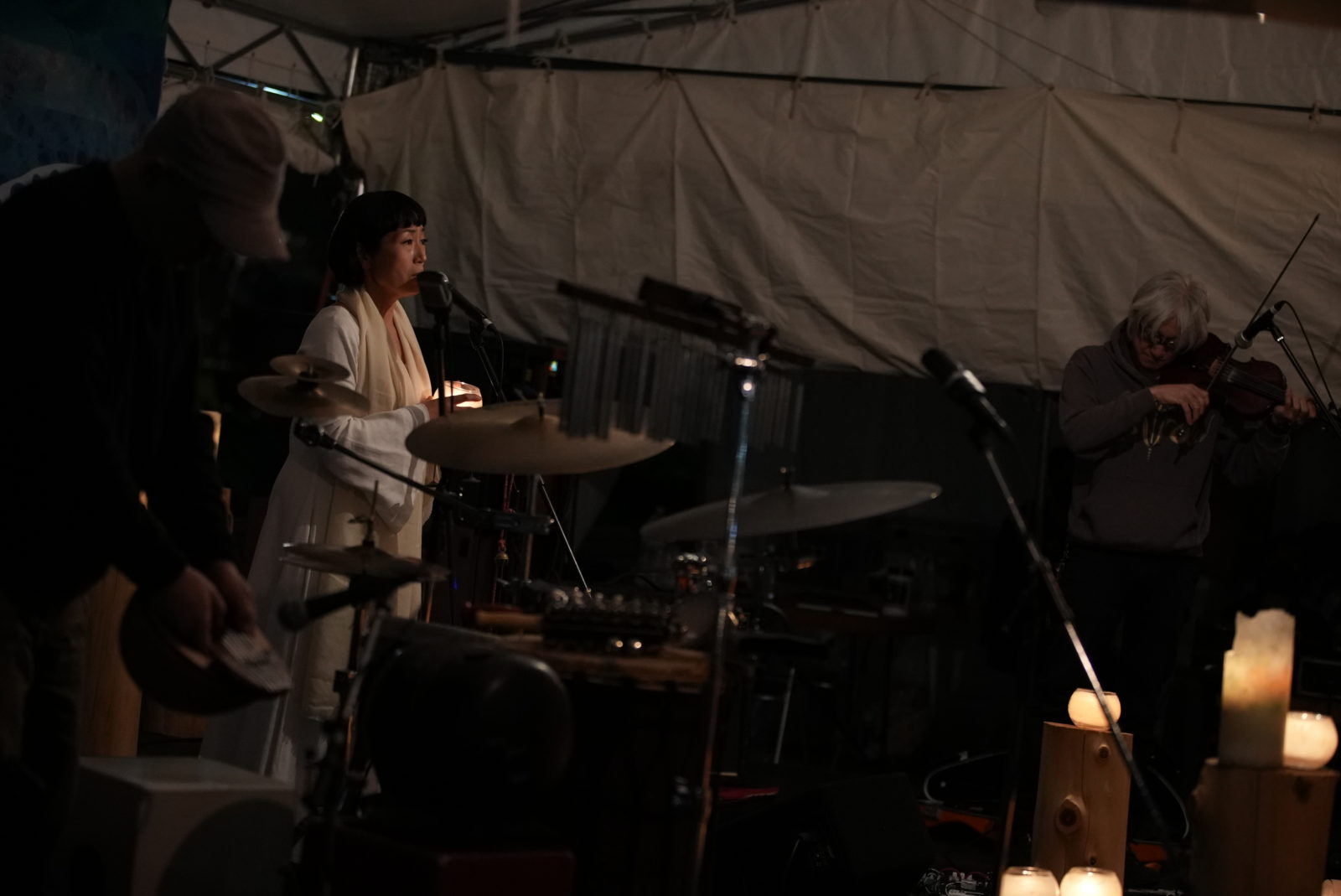 「新しい野外フェス」ソラリズムOPEN AIRキックオフ【日比谷2DAYS】を締めくくる3人の演奏。キャンドルに包まれ、白い旗が揺れる日比谷公園に未来への音色が響き渡りました。