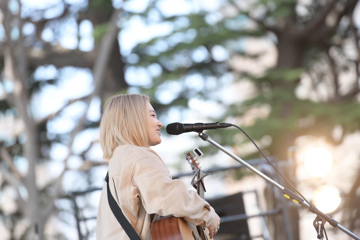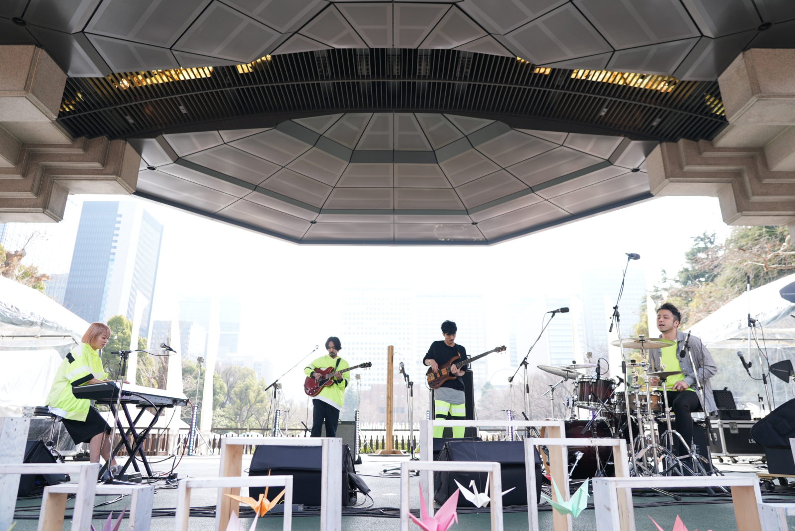 キーボードの音色に合わせゆっくりとステージに上がる佐藤千亜妃。とてもとてもさりげない、とても大切な第一声が会場に響に溶け込んでいきます。オーディエンスの表情も和やかに、いつしか日比谷の空には青色の晴れ間も見え始めました。